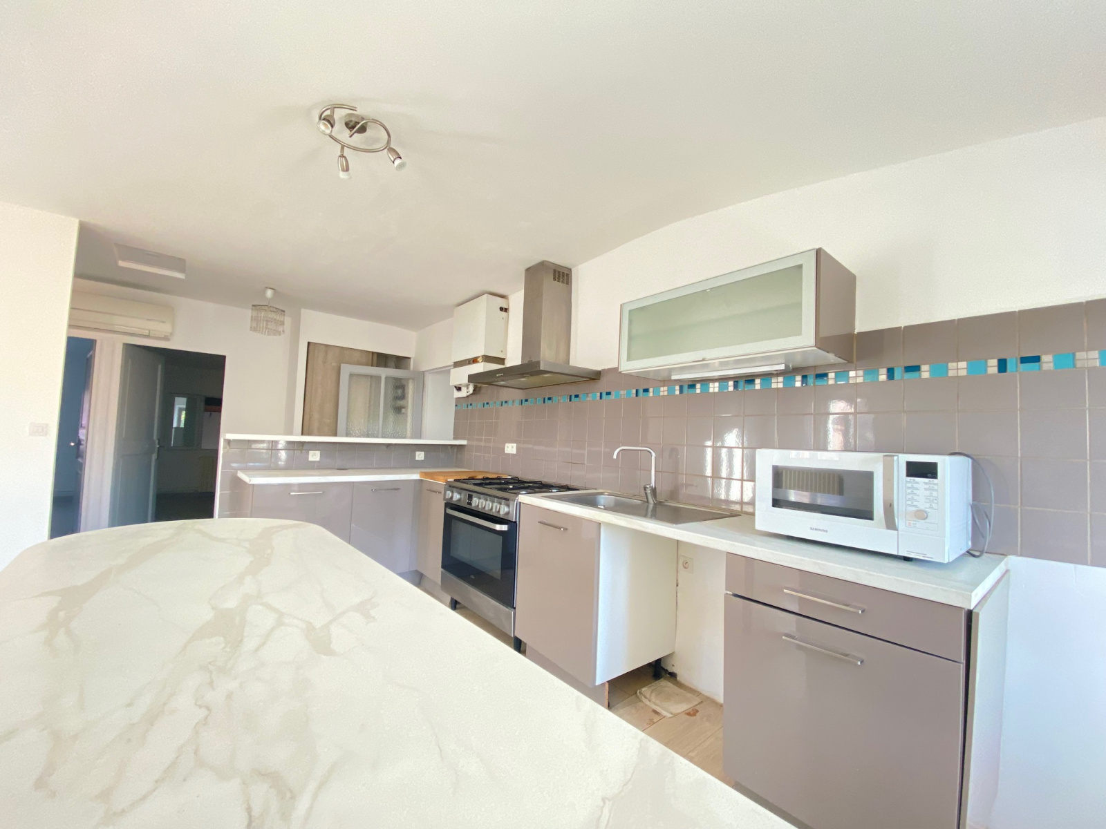 Dans le centre ville de Lorgues, Proche des parkings gratuits, écoles, lycée et collège, un appartement au 1er étage de 88m² composé de trois chambres, une salle d'eau avec WC séparé, un séjour, et une cuisine salle à manger équipée (four/ plaque et hotte)