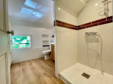 Au premier étage, une grande et lumineuse pièce à vivre de 28m² avec cuisine équipée (four/ plaque et hotte), et à l'étage, deux chambres climatisées et une salle d'eau/ WC.
